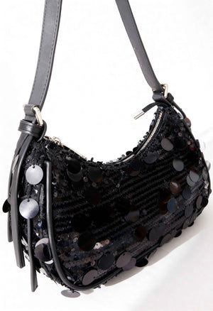 A bolsa que transforma qualquer look básico em produção de festa. Com brilho intenso dos paetês pretos e design compacto, ela é perfeita para acompanhar você em jantares, baladas, casamentos e todos aqueles momentos em que a intenção é apenas uma: chamar a atenção na medida certa.