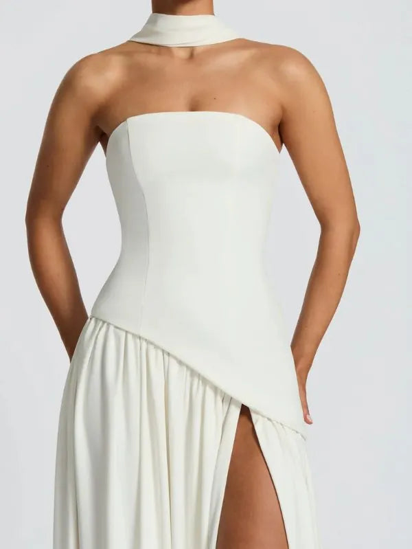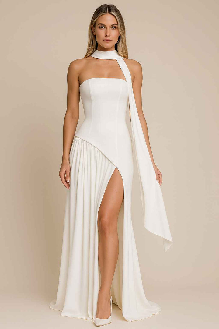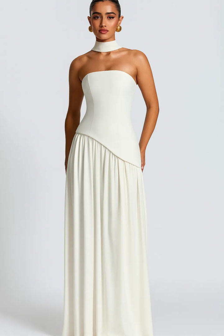 O Vestido Longo Branco Bordô Allegro é a escolha perfeita para mulheres que buscam elegância minimalista com design contemporâneo. Com gola choker destacável, corpete assimétrico e saia longa fluida, esta peça transmite sofisticação moderna e garante presença marcante em qualquer ocasião especial.
