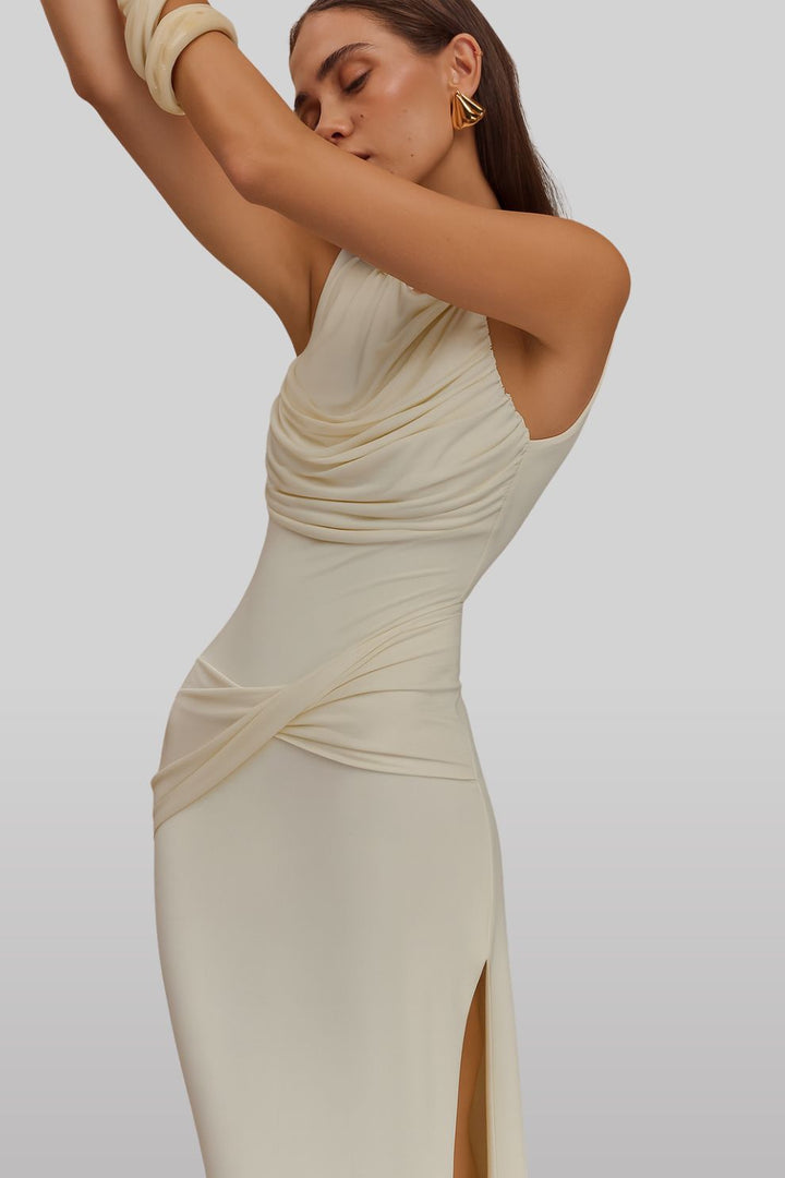 O Vestido Longo Champagne Aura é a escolha perfeita para mulheres que buscam sofisticação minimalista com sensualidade moderna. Com drapeados estratégicos, fenda lateral alta e modelagem coluna impecável, esta peça em tom champagne combina design escultural e elegância contemporânea para um visual deslumbrante em qualquer ocasião especial.