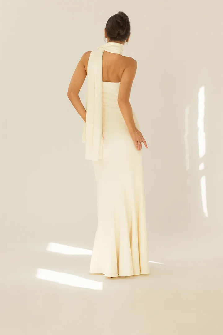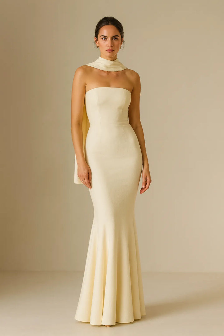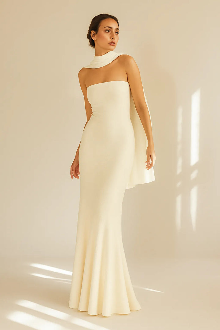 Vestido Longo Marfim Solene - Minimalismo Elegante