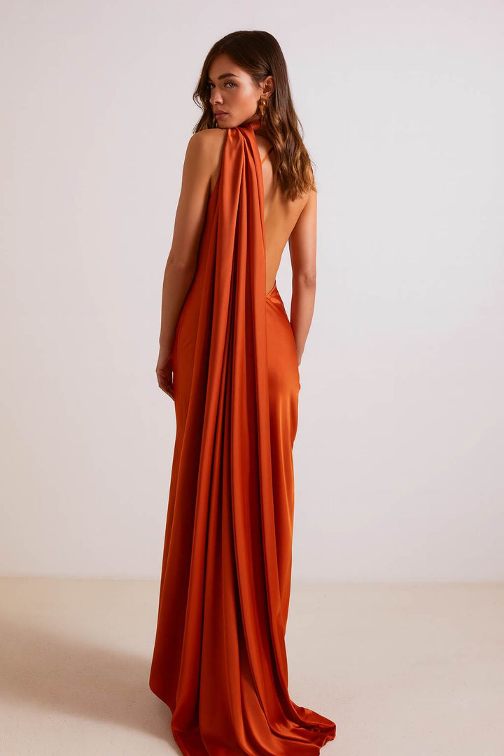 Vestido Longo Terracota Majestade - Drama e Sofisticação