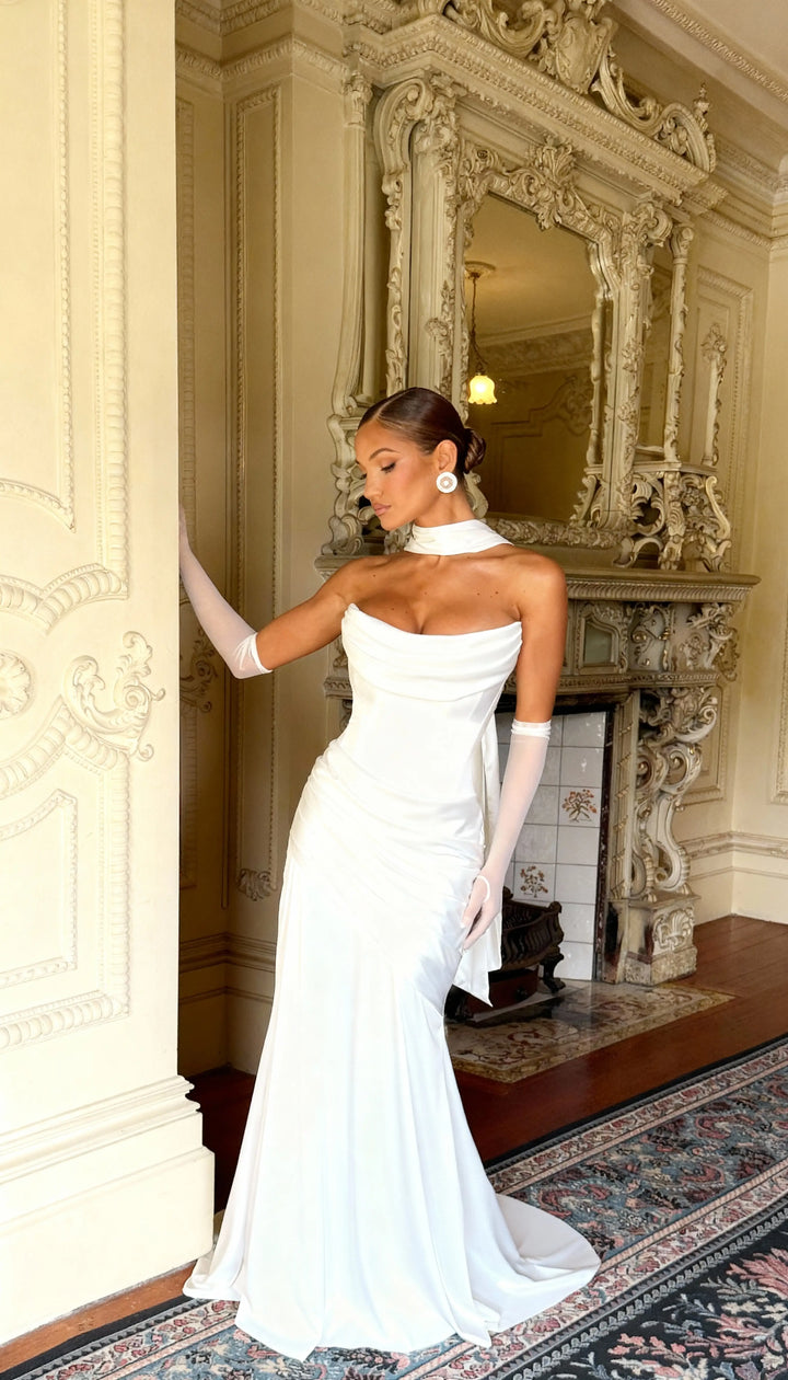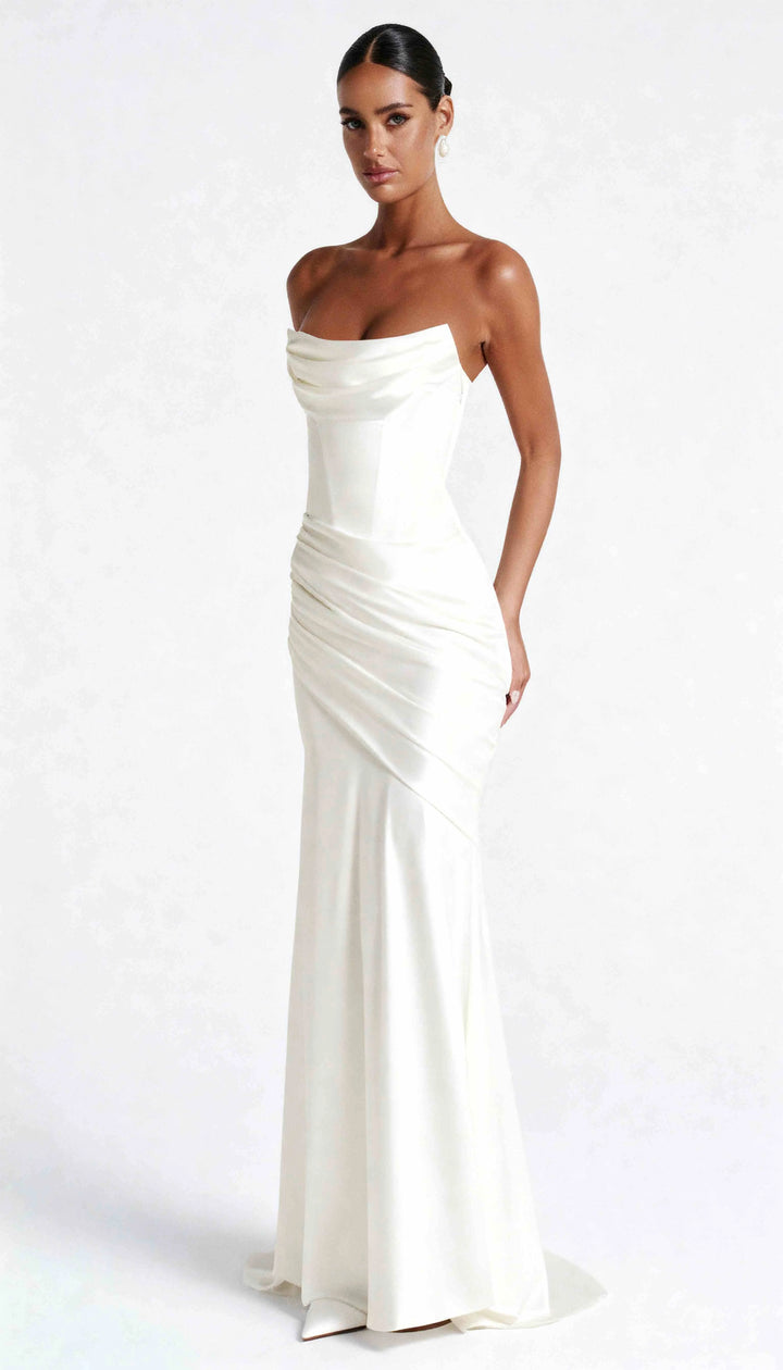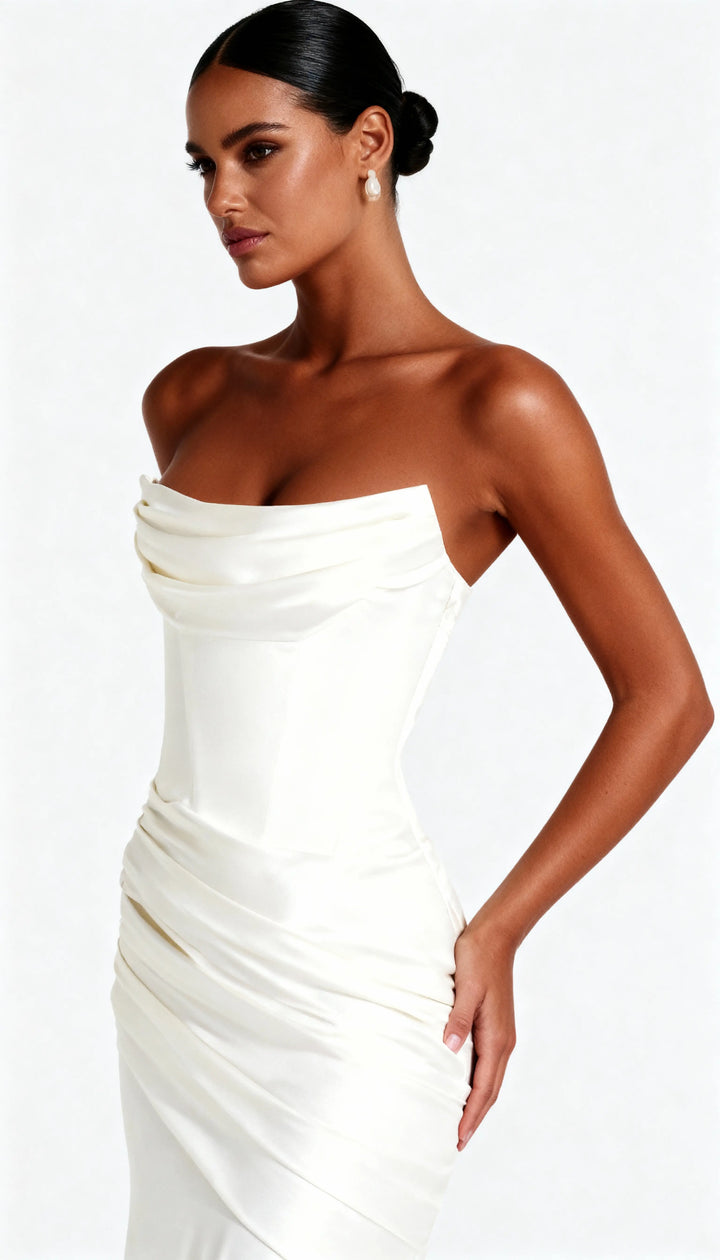 O Vestido Longo Branco Elegance é a escolha perfeita para mulheres que buscam elegância minimalista e atemporal. Com decote tomara-que-caia reto e drapeado diagonal estratégico, esta peça em branco imaculado transmite sofisticação discreta e garante presença marcante em qualquer ocasião especial.