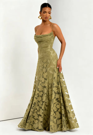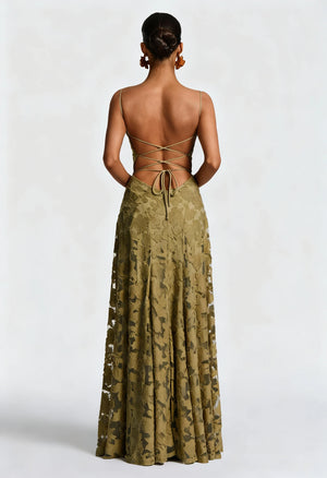 O Vestido Longo Cerejeira Verde é a escolha perfeita para mulheres que buscam romantismo etéreo com flores 3D exuberantes. Com pétalas aplicadas em relevo, costas com amarração cruzada e saia longa evasê, esta peça em rosa blush delicado combina feminilidade e sofisticação para um visual deslumbrante em qualquer ocasião especial.