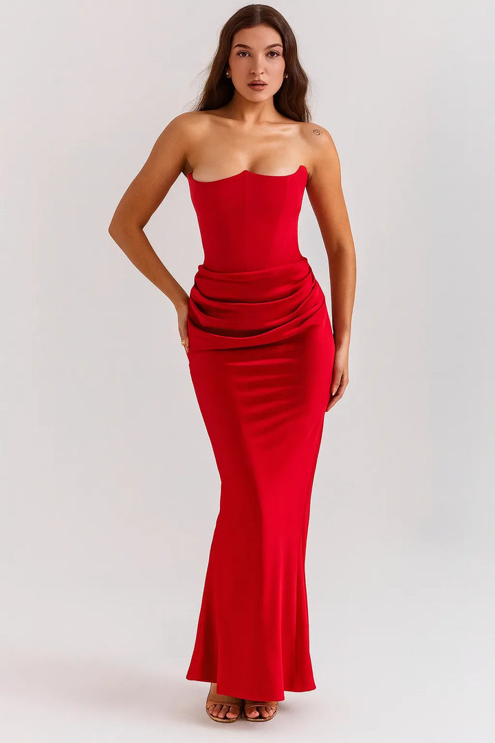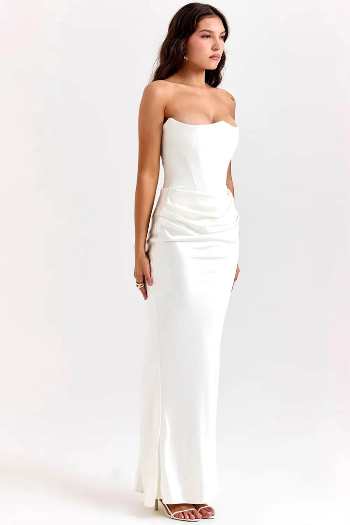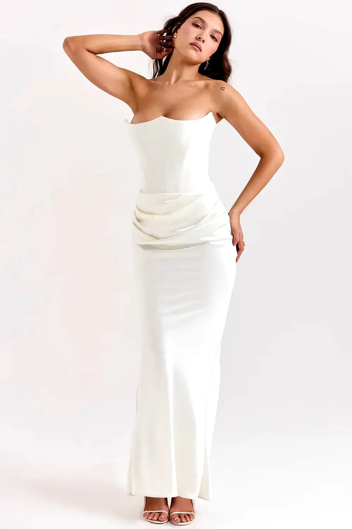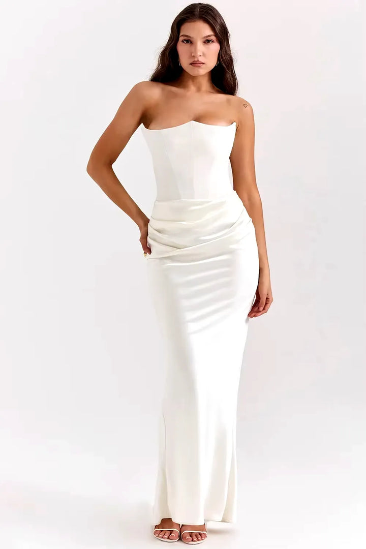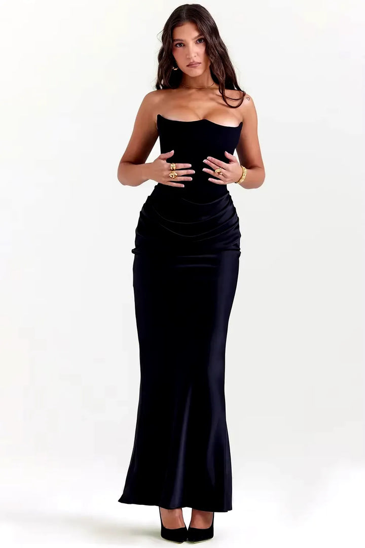 O Vestido Longo Elegância Atemporal é a escolha perfeita para mulheres que buscam elegância minimalista e clássica. Com decote tomara-que-caia em coração e modelagem sereia ajustada, esta peça transmite sofisticação discreta e garante presença marcante em qualquer ocasião especial.