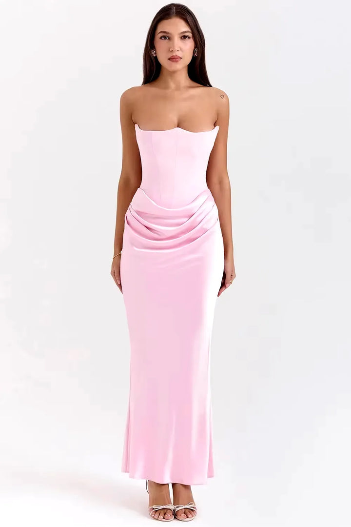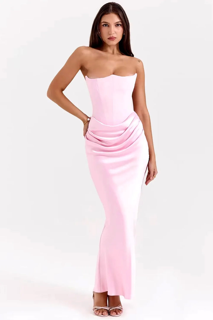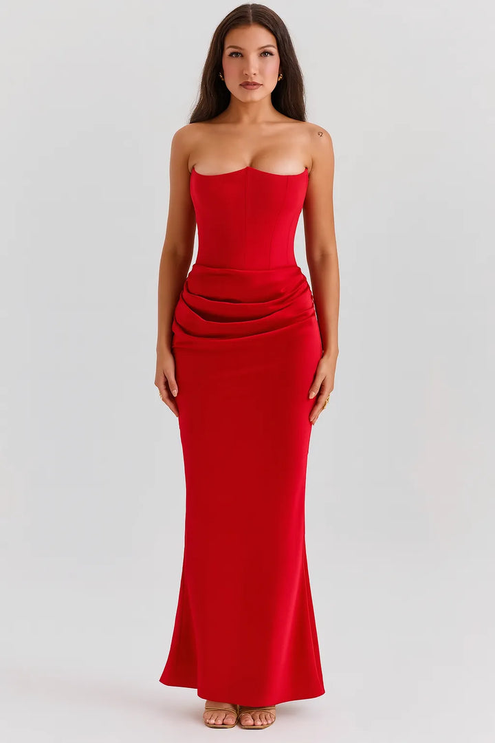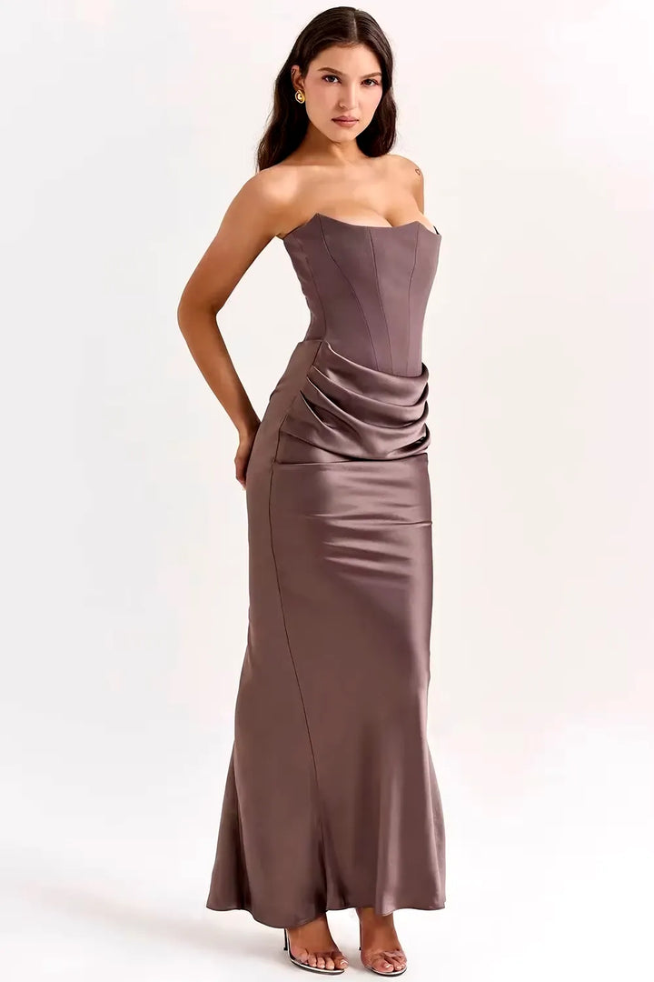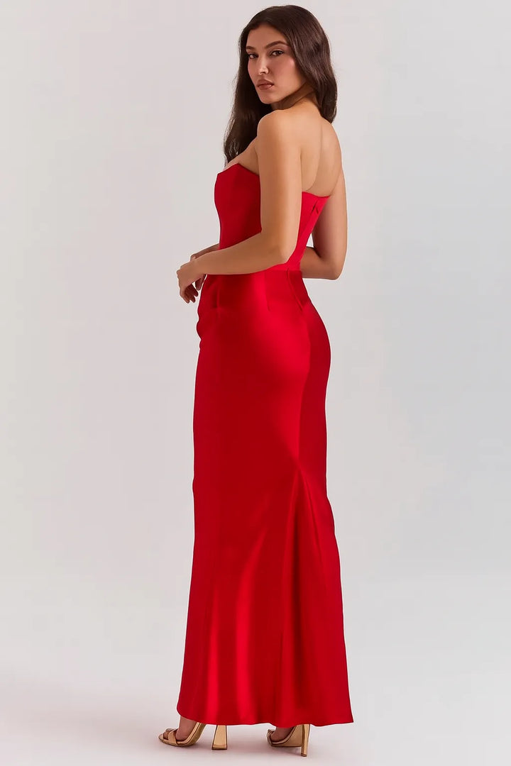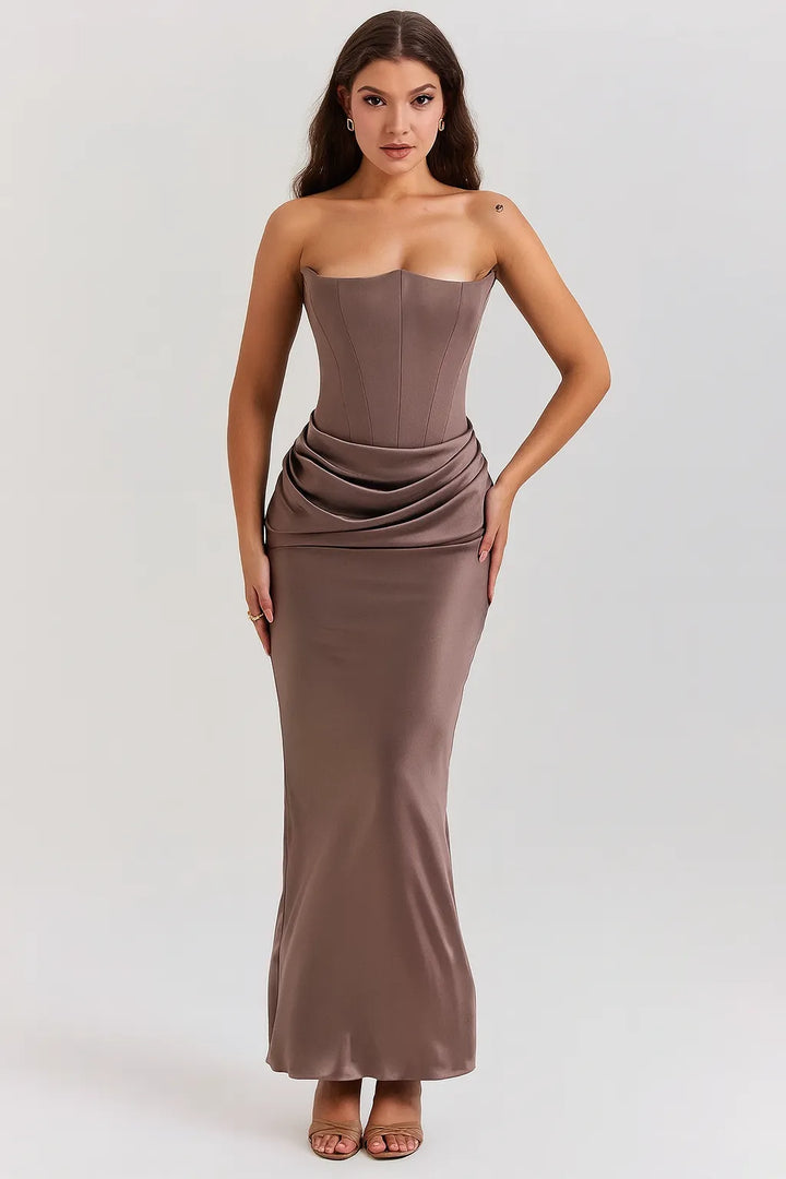 O Vestido Longo Elegância Atemporal é a escolha perfeita para mulheres que buscam elegância minimalista e clássica. Com decote tomara-que-caia em coração e modelagem sereia ajustada, esta peça transmite sofisticação discreta e garante presença marcante em qualquer ocasião especial.