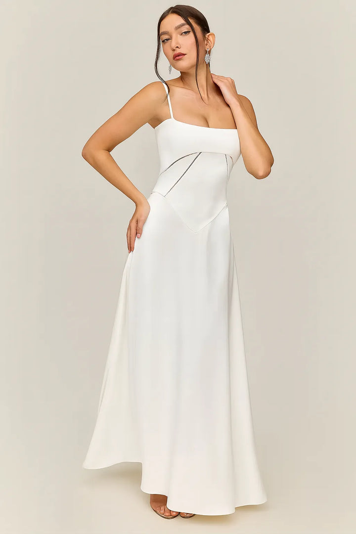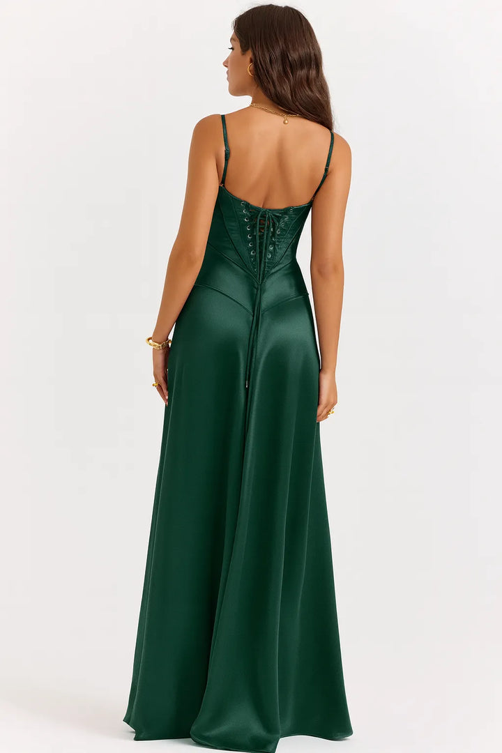 O Vestido Longo Ópera Royale é a escolha perfeita para mulheres que buscam sofisticação clássica com feminilidade atemporal. Com decote bustier estruturado, amarração tipo corset nas costas e saia evasê fluida, esta peça combina elegância vintage e design impecável para um visual deslumbrante em qualquer ocasião especial.
