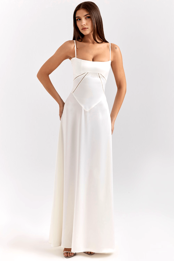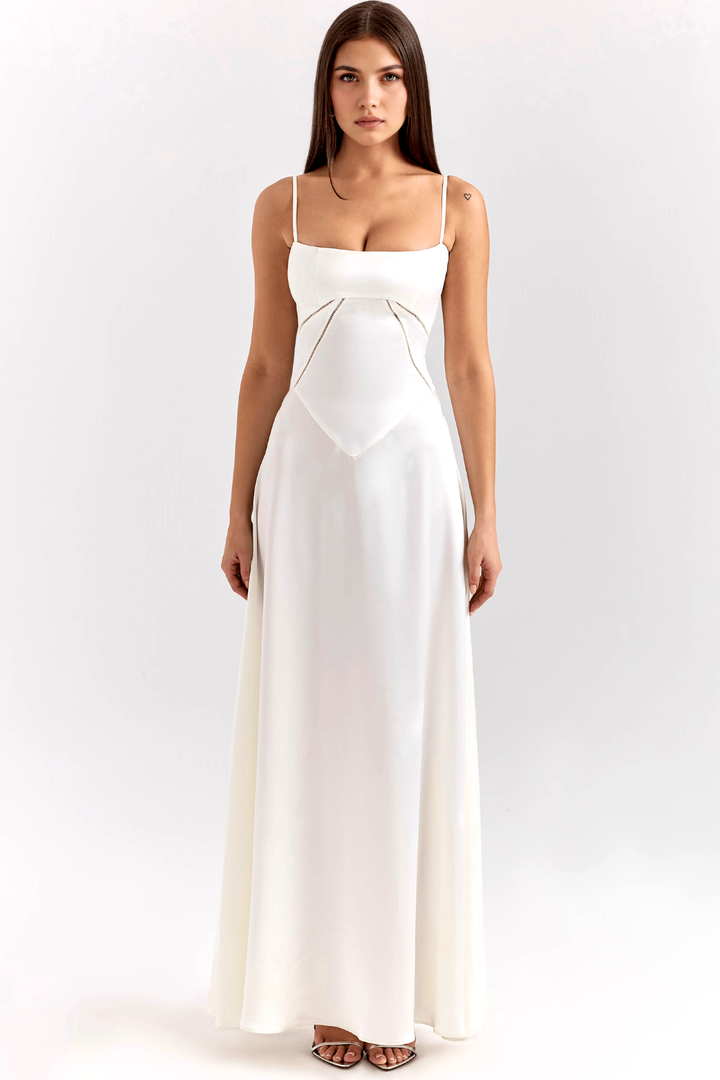 O Orquídea Imperial foi criado para noites em que você decide ser a referência. O corpo ajustado com recortes arquitetônicos esculpe a cintura e valoriza o colo com decote reto e alças finas, enquanto a saia longa em viés desliza com fluidez acetinada a cada passo — um efeito de luxo luminoso que imprime presença sem esforço. O tom fúcsia ilumina a pele e traduz poder contemporâneo com feminilidade marcante.