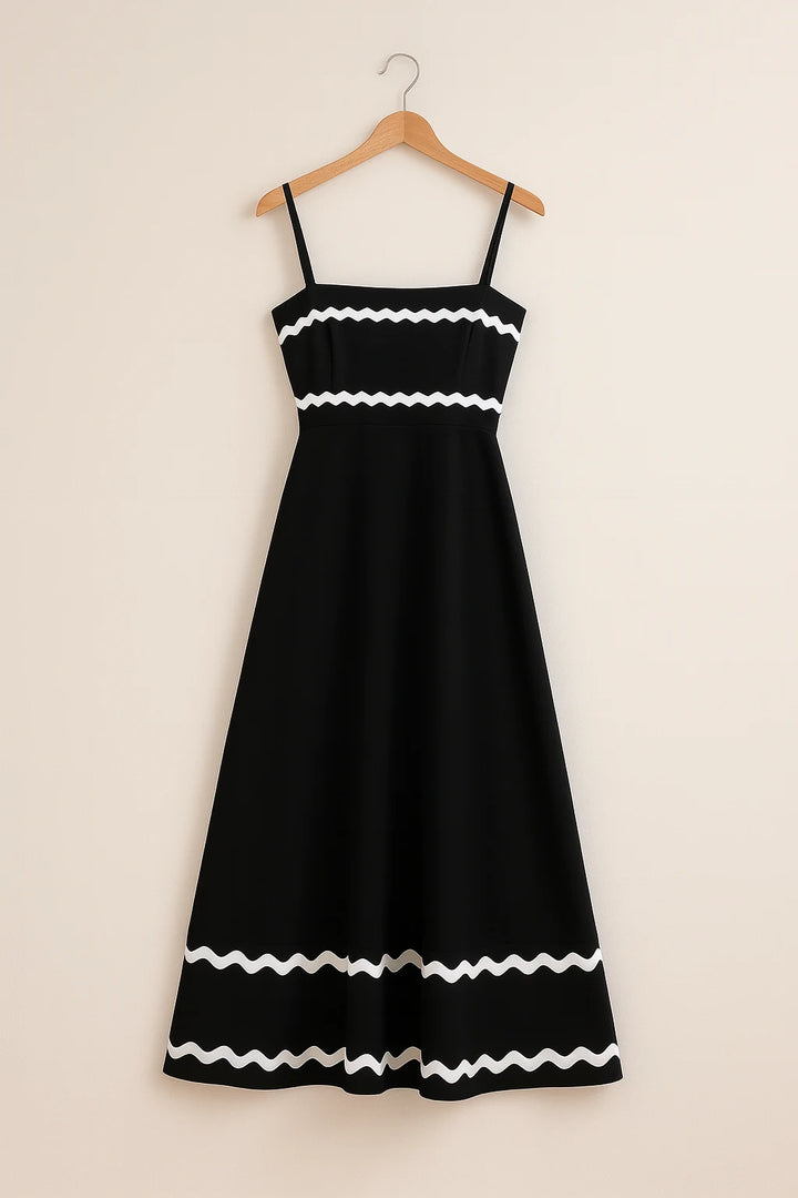 Vista-o para passeios à beira-mar, brunches em rooftops ou festas ao pôr do sol: a leveza do caimento e o contraste preto & branco garantem presença marcante e atemporal.