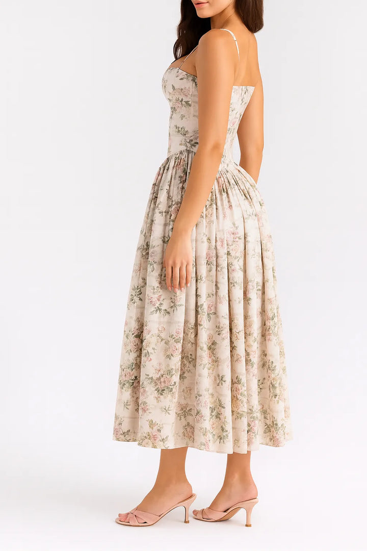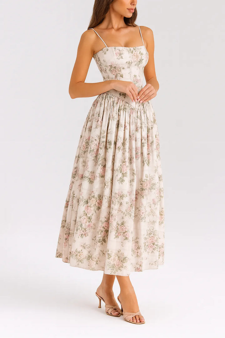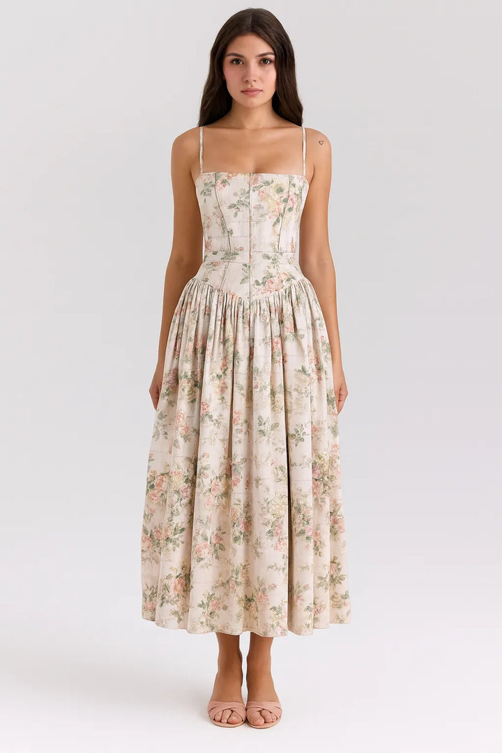 O Vestido Midi Floral Roseraie Antiga é a escolha perfeita para mulheres que buscam romantismo vintage com charme atemporal. Com estampa floral delicada, corpete bustier estruturado e saia midi evasê volumosa, esta peça combina feminilidade clássica e elegância para um visual deslumbrante em qualquer ocasião especial.