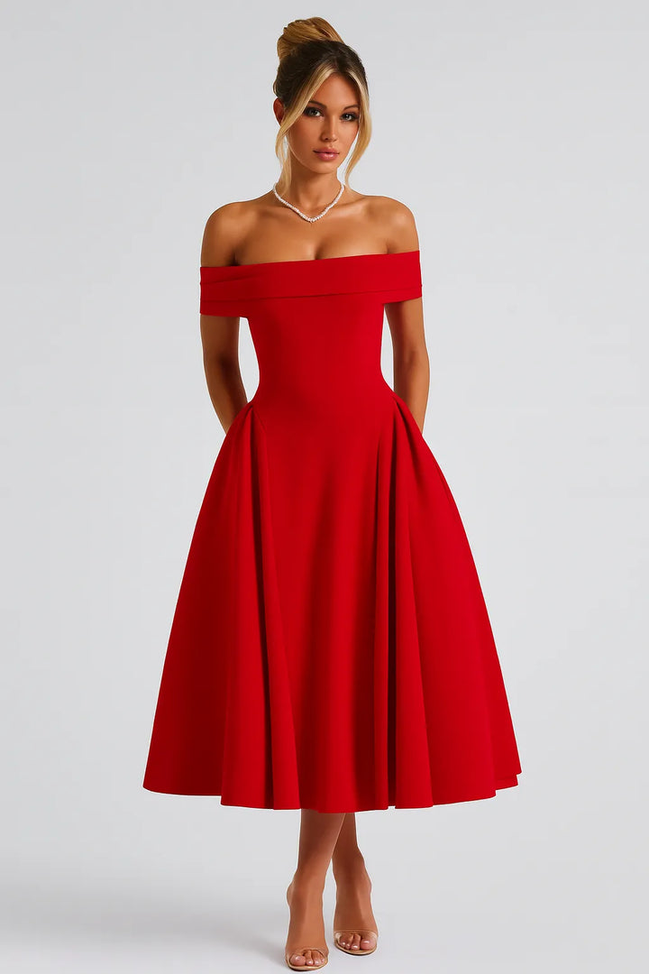 O Vestido Midi Valentina é a escolha perfeita para mulheres que buscam sofisticação com um toque de sensualidade. Com decote ombro a ombro e silhueta evasê, esta peça realça a feminilidade com elegância e garante presença marcante em qualquer ocasião especial.